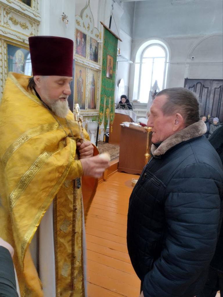 8 февраля, в Неделю о блудном сыне, протоиерей Николай Наумчук отслужил в лопатинском Никольском храме Божественную литургию. После службы батюшка поздравил с днём рождения прихожан – В.П. Архипова и юную Нику.